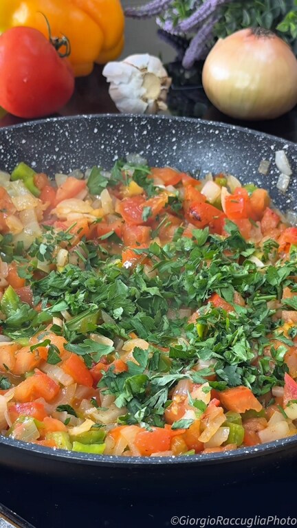 el pimiento verde, ajusta de sal y pimienta, añade una cucharadita de paprika, mezcla y deja cocinar unos minutos.