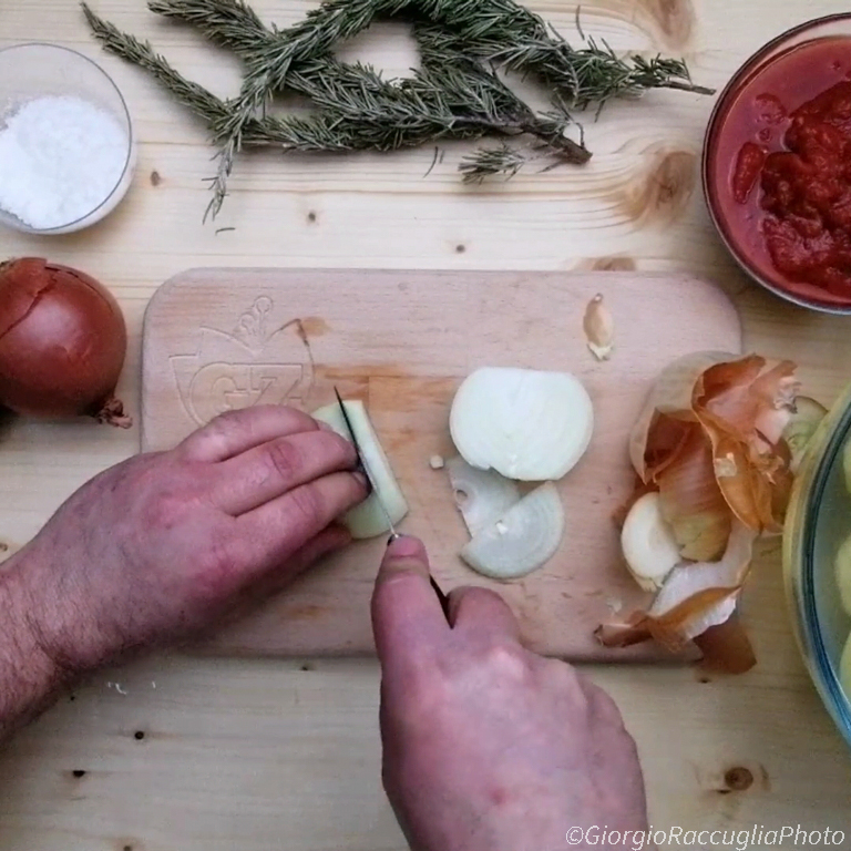 Herramientas para la receta de salchichas y patatas a la pizzaiola