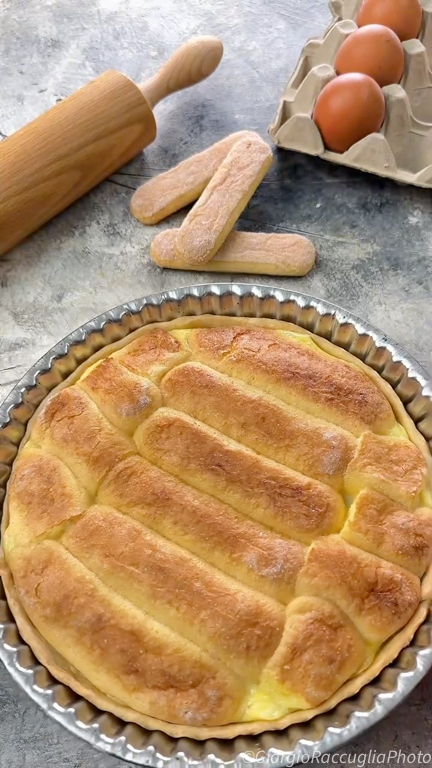 Para preparar la tarta de crema y soletillas precalienta el horno estático a 180°, extiende la masa de hojaldre en el molde y adáptala bien a los bordes. Coloca las soletillas sobre la base de hojaldre, procurando cubrir toda la superficie; rómpelas si hace falta para rellenar los huecos.