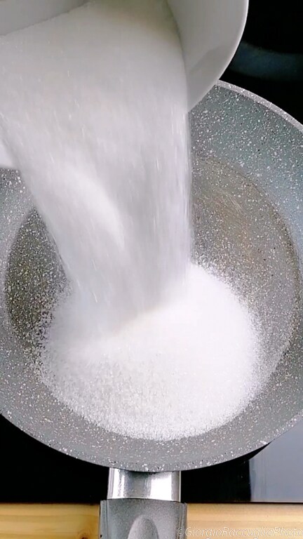 Terminado con la miel, comienza a verter poco a poco el azúcar a temperatura y