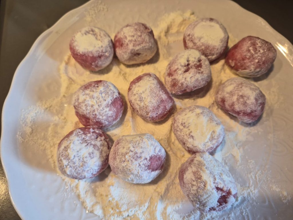 Tomad un poco de masa y formad bolitas rodando entre las palmas de las manos.