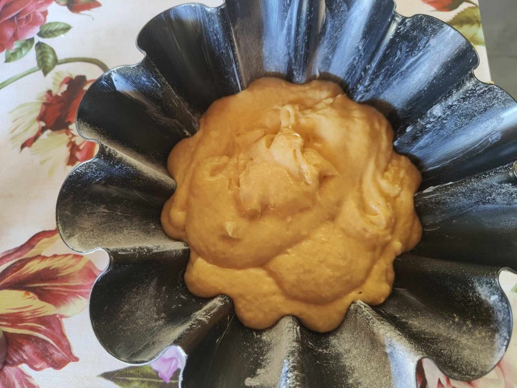 Colócala en un molde de rosquilla con un diámetro de 24-26 cm bien engrasado con mantequilla.