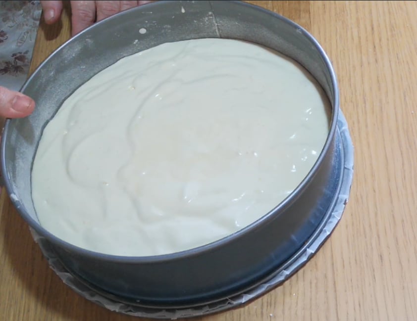 Finalmente, vierte la masa en un molde de 24 cm de diámetro, nivelando delicadamente sin presionar.