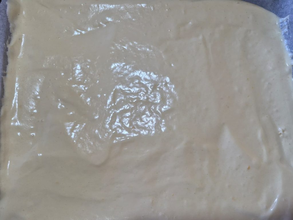 Forrad una bandeja de horno con papel vegetal y alisad la masa.