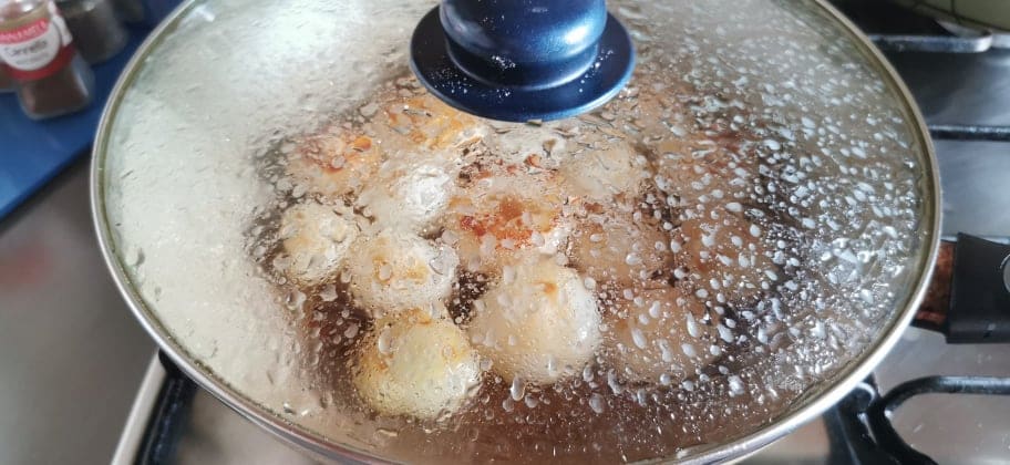 Finalmente, añadir medio vaso de agua, bajar el fuego, cubrir con una tapa y dejarlas cocinar durante 15 min.