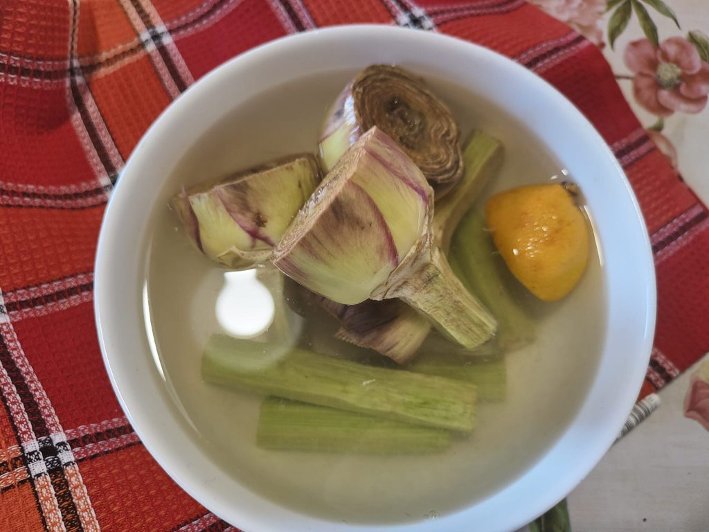 Sumergir las alcachofas inmediatamente en agua acidulada para que no se pongan negras