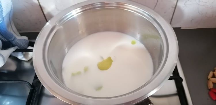 Vierte la leche en una cacerola y ponla a hervir con la cáscara entera del limón, asegurándote de obtener solo la parte amarilla.