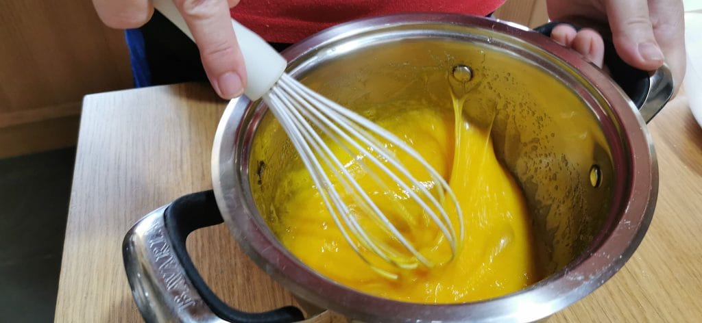 Ponla nuevamente al fuego y, siempre removiendo, veras que la crema pastelera se espesará en pocos segundos.