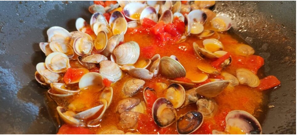 La almeja, viviendo en aguas abiertas, tiene un sabor más fuerte que el de la vongola, que se cultiva en aguas salobres, con un contenido de sal menor y, por lo tanto, un sabor más delicado.