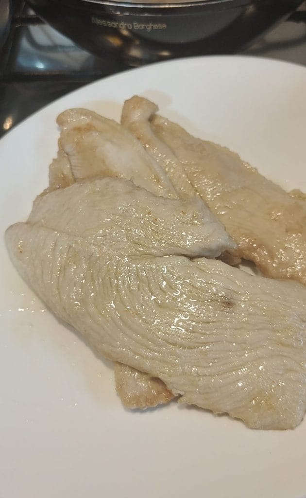 Yo he utilizado carne de pavo pero también van bien las pechugas de pollo, o los filetes de ternera o de res. En fin, usad la que más os guste. Pero tened en cuenta que deben ser muy tiernas.
