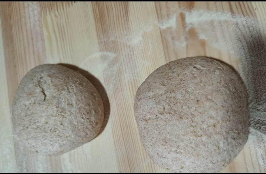 O bien, una vez que la leudación esté lista, podéis dividir en panecillos de aproximadamente 200 g.