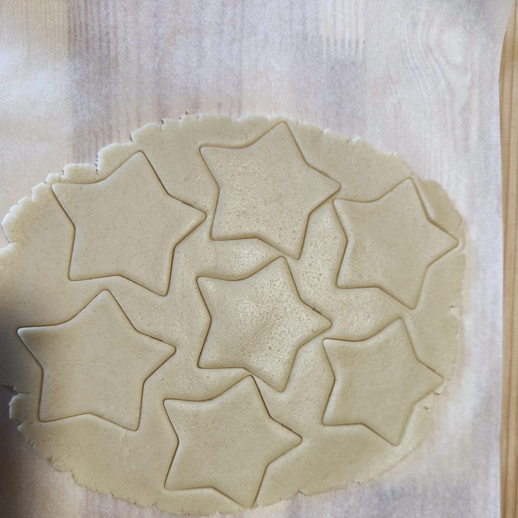 Estiradla con un rodillo y cortad las galletas con el molde en forma de estrella.