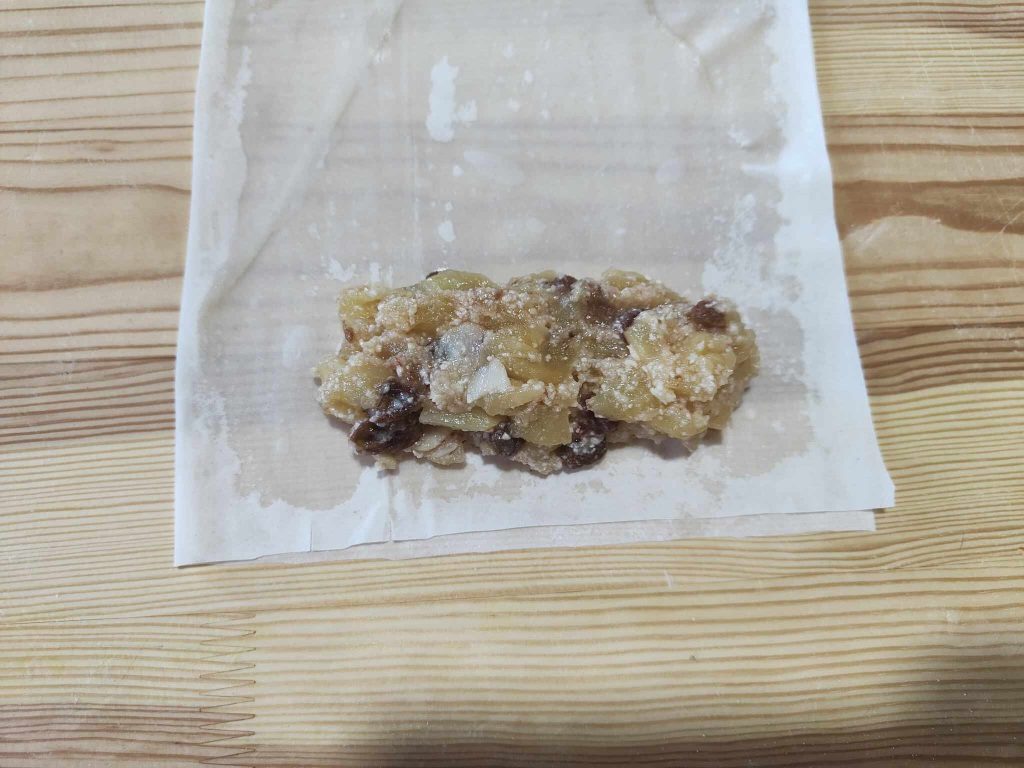 Después añadid a las manzanas, las pasas, los piñones y por último dos cucharadas de pan rallado.