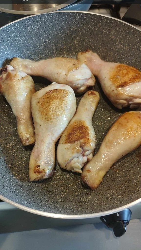 Una vez obtenida la selladura de la carne, desglasa el pollo con el jugo de los limones y agrega inmediatamente después medio vaso de agua (aproximadamente 100 ml).