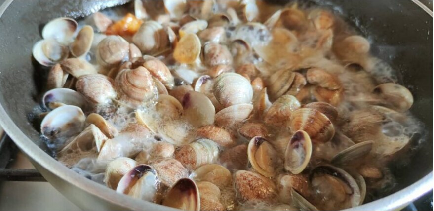 Dejamos que las almejas se abran y las llevamos a llama viva, removiendo.