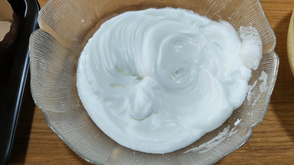 • Una vez que la clara se ha amalgamado bien… añadid el resto de la clara y mezclar de abajo hacia arriba.