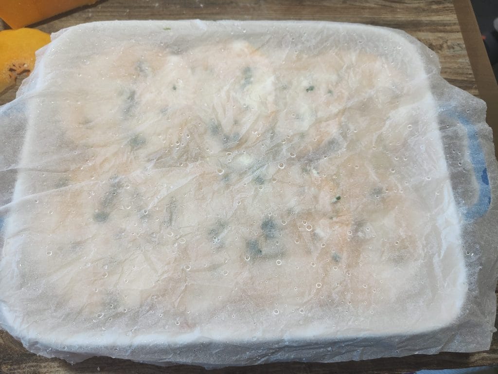• Cubre la fuente con una hoja de papel de horno humedecida y escurrida y encima una hoja de aluminio.