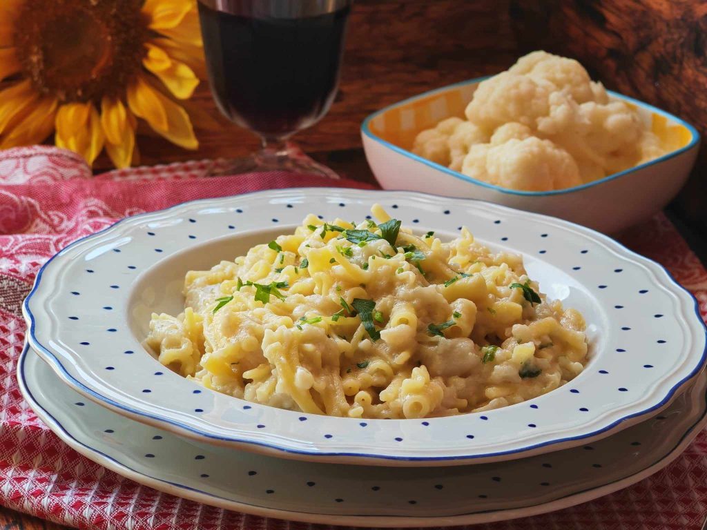 Pasta con coliflor a la Napolitana reconfortante, caliente y sabrosa. Un primer plato fácil y rápido que gusta mucho también a los niños. La característica principal de la versión napolitana es que se cocina todo en una sola olla, sin cocer la pasta por separado.