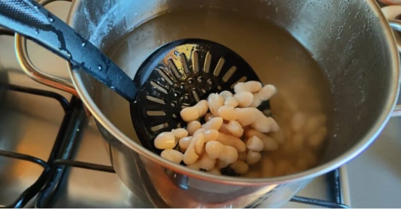 Primero pon a remojar los frijoles cannellini al menos 12 horas antes de proceder con la preparación. Una vez que los frijoles estén blandos, escúrrelos y cuécelos en abundante agua y romero.