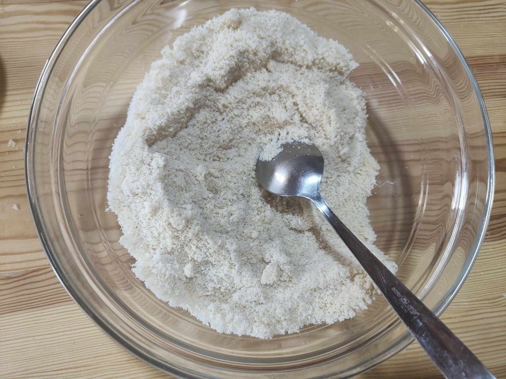 Deberás mezclar y hacer una ligera presión para aplastar la mezcla y permitir que la harina de almendra libere el aceite que contiene.