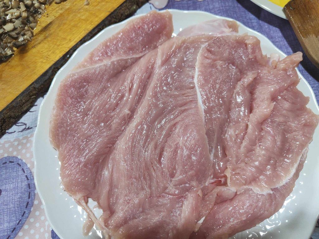 Coloca encima los champiñones y el jamón serrano, asegurándote de dejar unos centímetros alrededor del pavo.