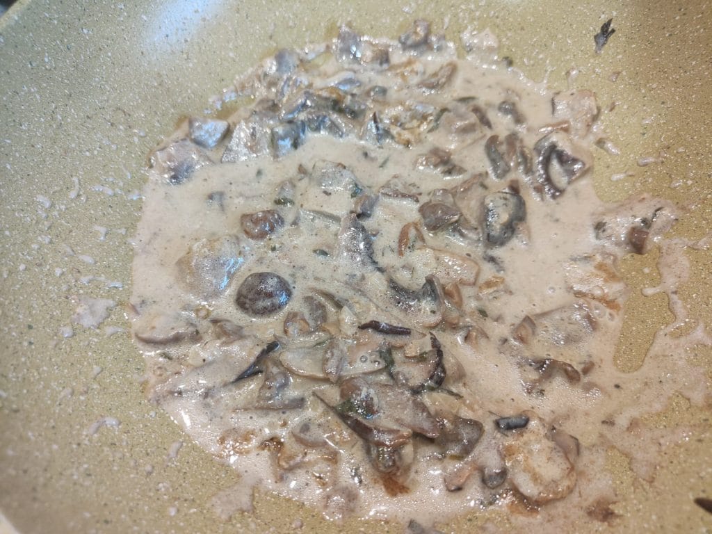 Para cocinar este primer plato vegetariano muy sabroso, podemos usar champiñones o una mezcla de setas y, para un sabor más intenso, también puedes añadir un poco de setas congeladas o secas. Si usas las secas te aconsejo…(Deja las setas secas en remojo durante 15-20 minutos en un bol y una vez escurridas, exprímelas con delicadeza) y sentirás que le dan un impulso extra a la salsa de champiñones.