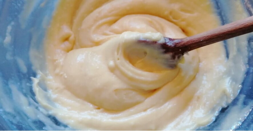 Continúa mezclando hasta que la pasta choux esté espesa y caiga del cuchara.