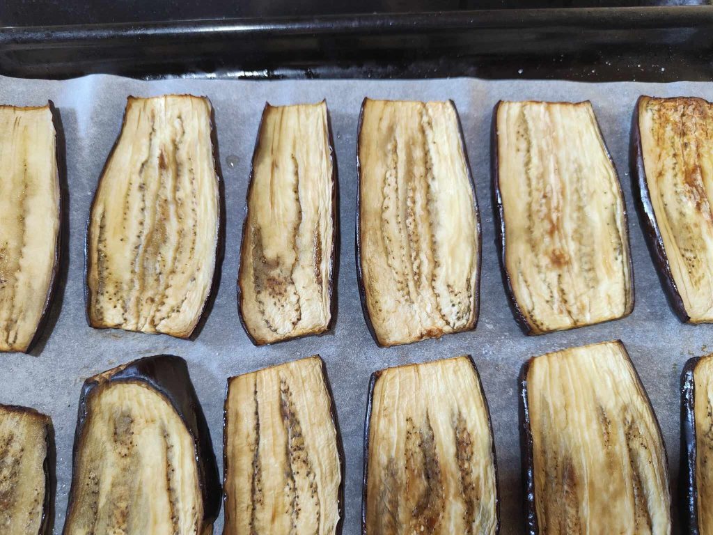Cocina en una sartén (a la parrilla, fritas o al horno) las berenjenas añadiendo sal y pimienta.