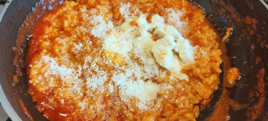 Una vez terminada la cocción, añade parmesano y mantequilla y remueve.