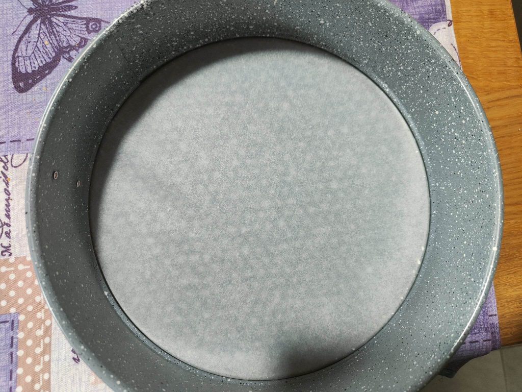 • Comenzamos untando con mantequilla y enharinando un molde para tarta de 24 centímetros de diámetro.