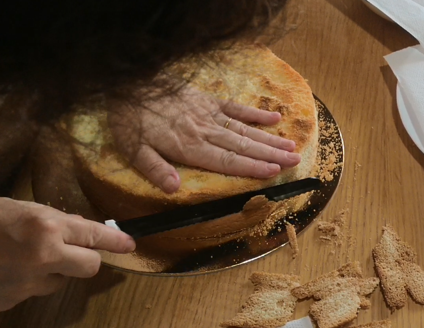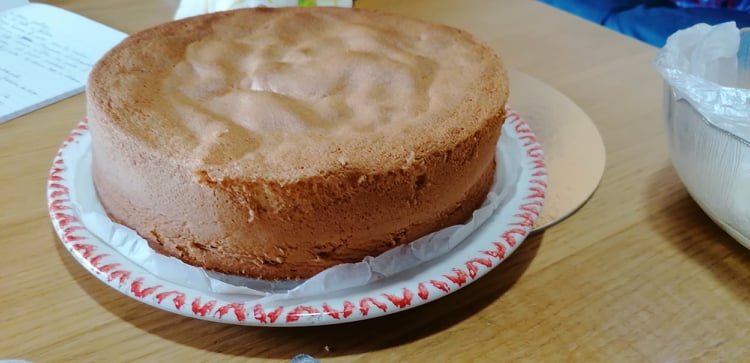 • Cortad el bizcocho en 3 discos de igual grosor.