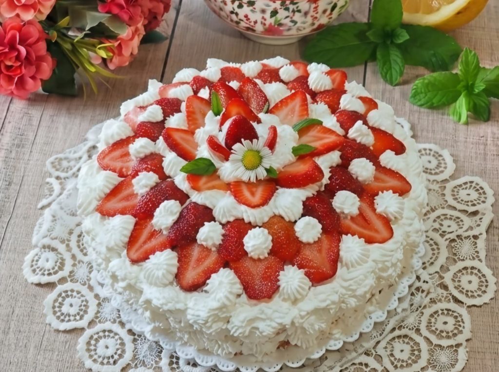 Es el postre que más evoca los recuerdos de los cumpleaños de la infancia, los domingos en familia y las grandes ocasiones, capaz de conquistar a primera vista con su elegancia nívea y el rojo vivo de las fresas frescas.