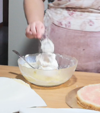 • Añadid 4/5 cucharadas de nata montada a la crema pastelera.