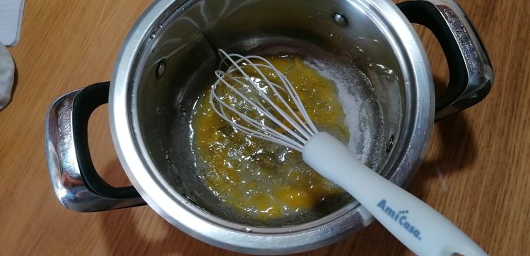 • En un cazo unid agua y azúcar y calentad hasta llevar a ebullición.