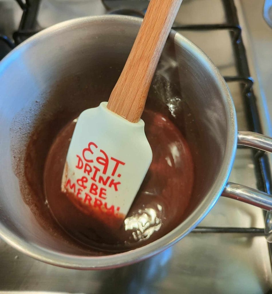 • En un cazo, derrite la mantequilla y el chocolate negro al baño maría.