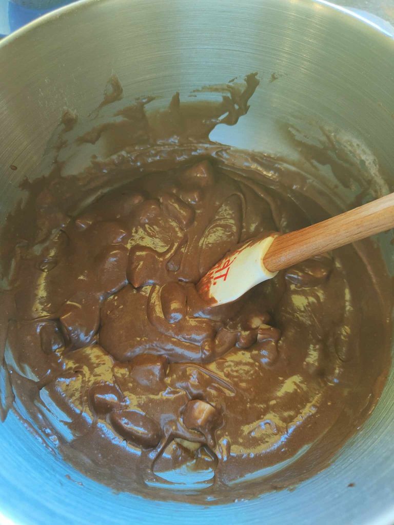 Agrégalo a la mezcla (el chocolate derretido no debe estar caliente. Déjalo enfriar un poco antes de añadirlo a la masa)