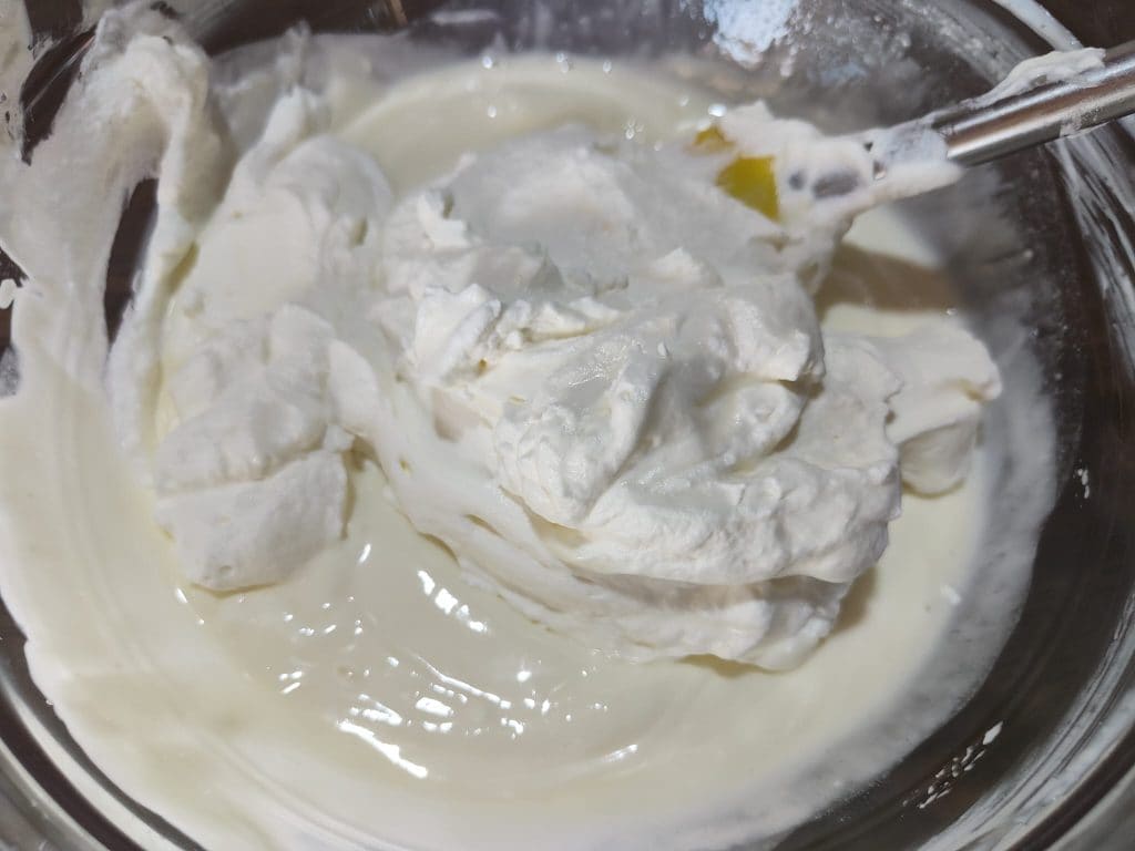 • Añade también la nata montada y mezcla bien.