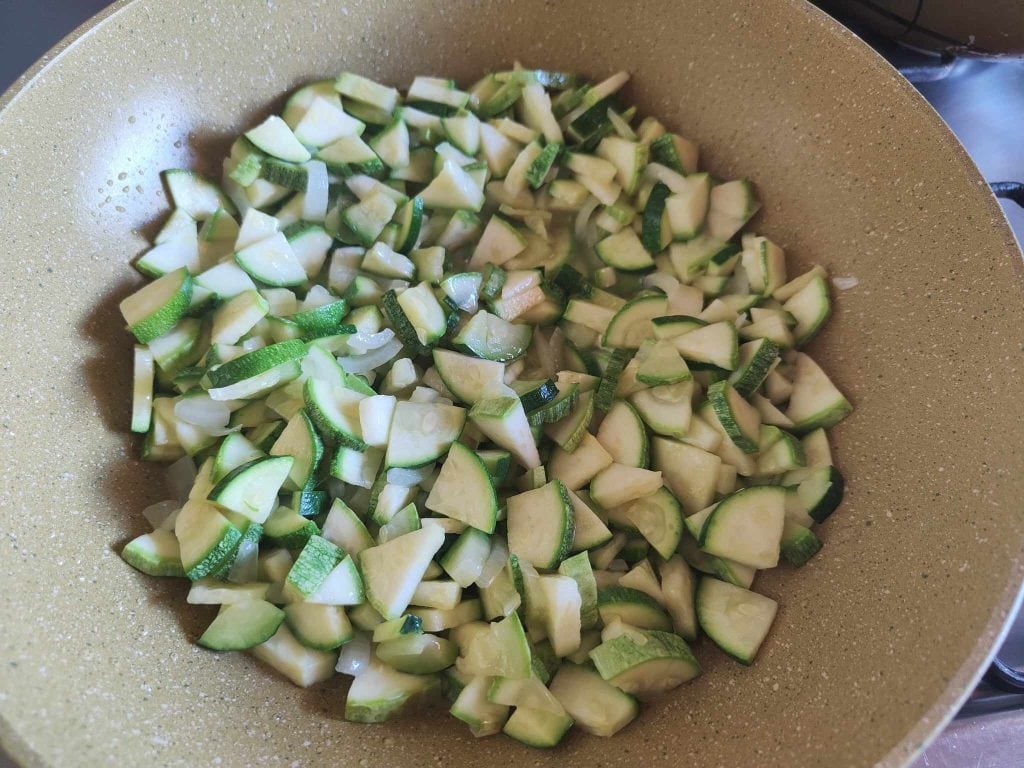 Sofríe los trozos de calabacín en la sartén con poco aceite y pimienta.