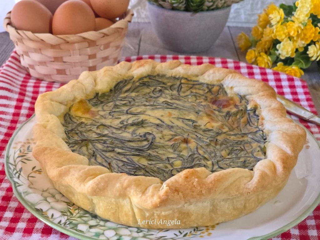 Tarta salada de agretti al horno o en freidora de aire. ¿Tienes poco tiempo pero ganas de algo rico? Esta tarta salada es la solución. «Gasto mínimo, lista en un momento, ¡se acaba en un segundo!»