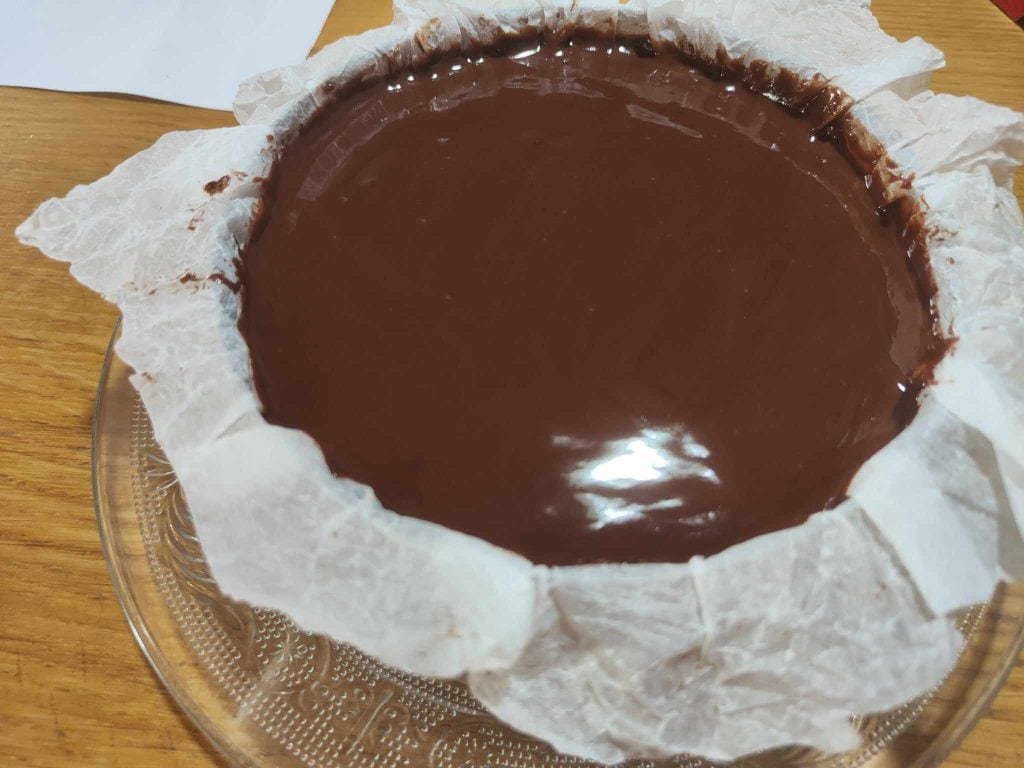• Vierte la cobertura obtenida sobre la tarta y deja reposar en la nevera por al menos 3 horas.