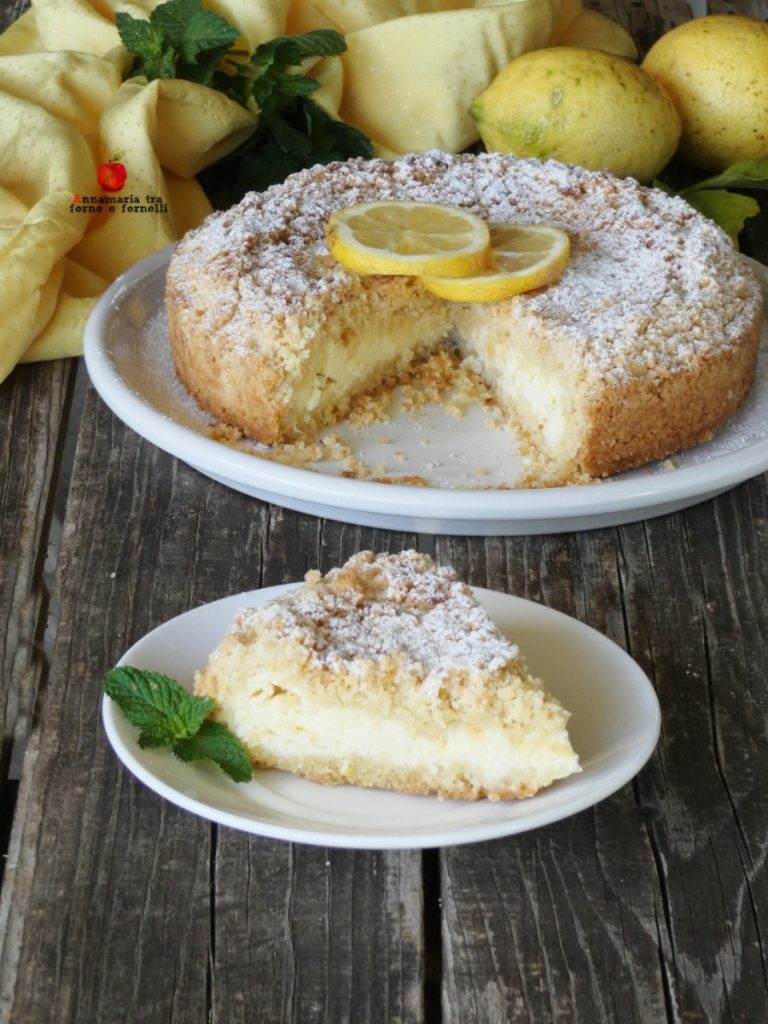 Dejar enfriar y desmoldar. Colocar en un plato de servir y espolvorear azúcar glas sobre la Sbriciolada con crema de ricotta al limón.