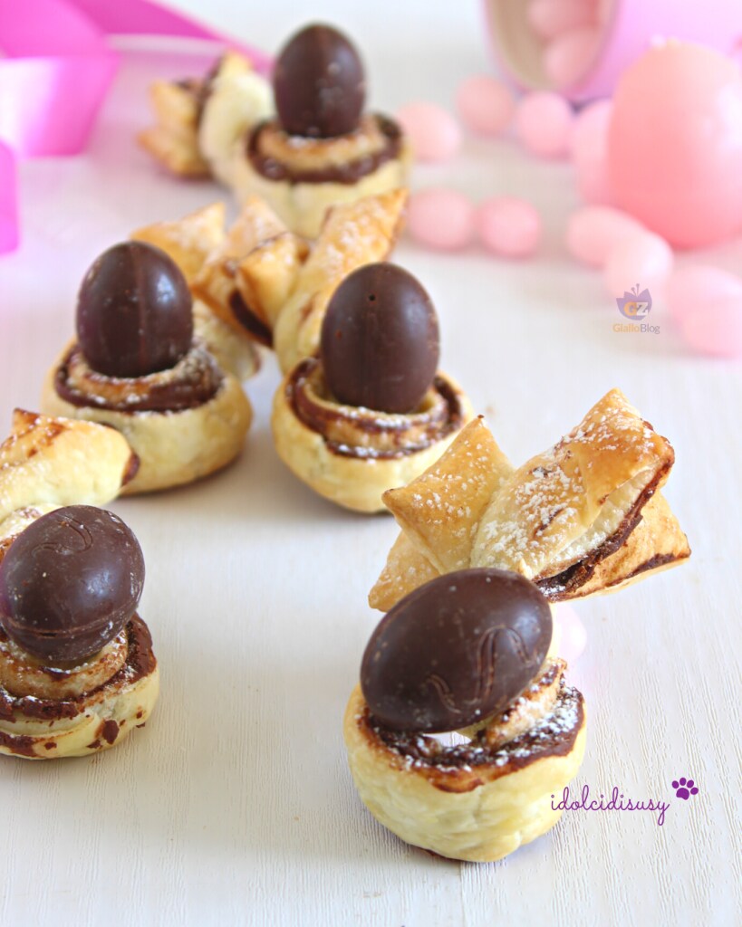 Preparar los conejitos de Pascua de hojaldre es facilísimo, solo necesitarás tres ingredientes: un rollo de hojaldre, la crema de avellanas y los huevitos de chocolate negro o con leche o los de colores. En solo veinte minutos los conejitos de Pascua están listos, un dulce caprichoso, muy simpático y delicioso. La crema de avellanas la puedes preparar en casa o puedes usar la clásica Nutella. Pasemos a la receta, ¡hasta pronto Susy!