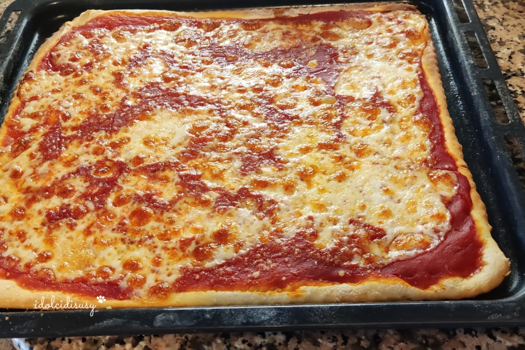 La masa es fácil y rápida, la preparo con mi Thermomix por la mañana, la dejo levar y por la noche preparo una deliciosa pizza margarita. Nos gusta mucho y siempre recibo muchos cumplidos, especialmente de mi hijo, que no es muy fanático de la pizza, porque él prefiere los panecillos para hamburguesa, pero nunca dice que no a mi pizza, ¡es más, se come hasta el borde!