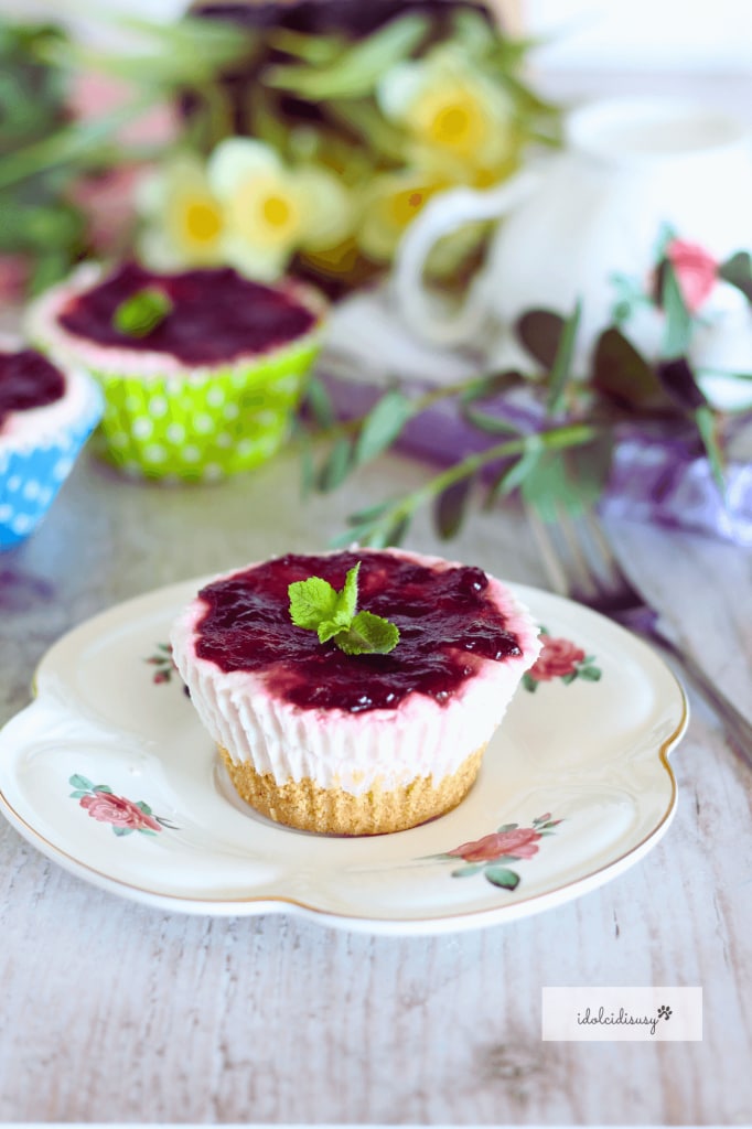 Me encanta usar el yogur griego en mis recetas: me gusta muchísimo por su sabor fresco y la consistencia compacta que se combina perfectamente con el mascarpone cremoso. En esta versión, preparo la tarta de queso en cómodas porciones individuales, ideales para servir en fiestas o para tener en el congelador, siempre listas para cuando tengo ganas de algo delicioso. Si te gustan los postres sin horno, te recomiendo también la tarta de yogur sin horno que preparo a menudo: es otra receta fresca, ideal para cualquier ocasión y fácil de personalizar!