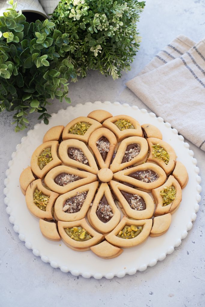 Biscrostata, la receta de la tarta que se cree crostata, pero que no es más que un conjunto de galletas ojo de buey, modeladas y recortadas para formar un dibujo muy coreográfico. Para hacer esta tarta necesitaréis moldes para bis-crostate o biscotorte, los encontraréis en internet; como alternativa, haced plantillas de cartón o, para simplificar, preparad una Crostata ojo de bue con Nutella o una Crostata ojo de bue con crema de pistacho.