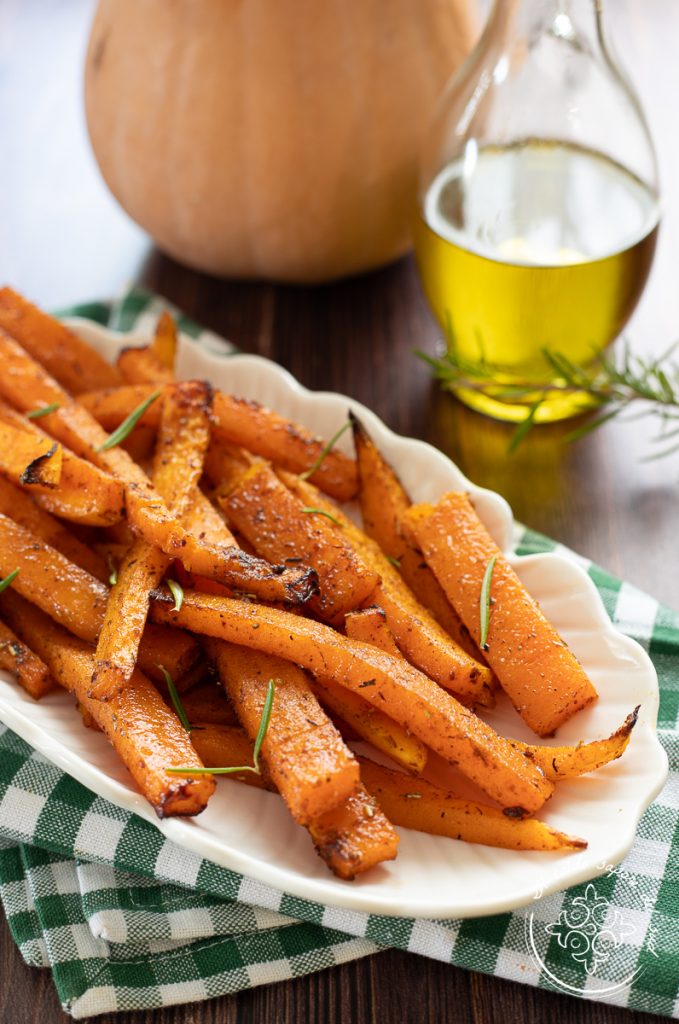 Palitos de calabaza en freidora de aire, la guarnición ligera y sabrosa, ligera y sin gluten, perfecta para llevar a la mesa como receta otoñal rápida y ¡apta para todos! Hoy preparamos los sticks de calabaza en freidora de aire, una receta con calabaza sana y sabrosa, vegana y vegetariana, perfecta para toda la familia e ideal si tenéis invitados que siguen una alimentación sin ingredientes de origen animal, como la receta de la Calabaza agridulce en freidora de aire. Hacer estos palitos de calabaza sin pan rallado es muy sencillo y, si queréis, también podéis cocinarlos en el horno. Para sazonarlos podéis usar solo pimienta o romero, o si preferís —y os lo recomiendo porque este es el ingrediente secreto que marca la diferencia— utilizar un buen condimento para asados. Completo de sal y rico en especias tal y como ya está formulado, ¡dará a vuestra calabaza en freidora de aire un sabor rico y especial! Me acuerdo: para un resultado muy satisfactorio, utilizad una calabaza lo bastante dulce; por lo demás, vamos a la cocina y preparamos juntos esta deliciosa guarnición en muy pocos minutos. Antes, os recuerdo que si queréis estar al día con todas mis recetas, podéis seguir mi página de Facebook (aquí) y mi perfil de Instagram (aquí) y que aquí, en cambio, encontraréis cómo hacer las Patatas y calabaza en freidora de aire.