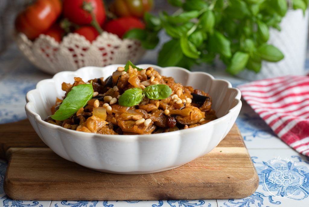 Déjala reposar al menos una hora antes de degustarla, porque como es sabido: cuanto más reposa la caponata, mejor está.