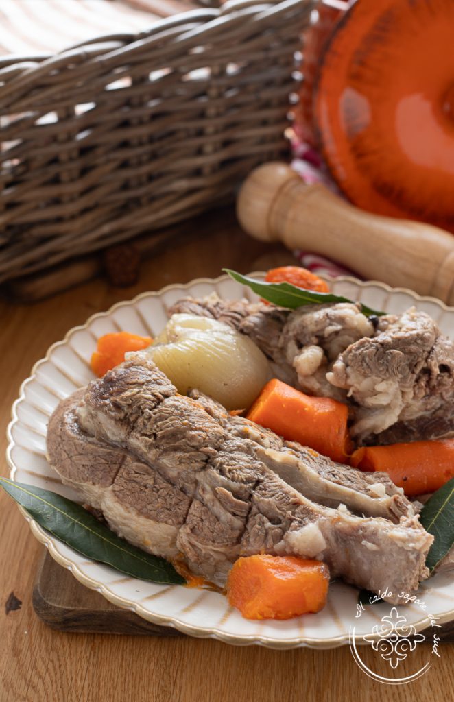 Carne de vacuno hervida muy tierna, la receta de la abuela. ¿Os encanta la carne hervida, pero no recordáis ya cómo la preparaban la madre y la abuela? No os preocupéis, aquí os desvelo los trucos y secretos para conseguir en pocos pasos una carne de vacuno hervida muy tierna y jugosa con un caldo de carne sabroso y aromático, perfecto para risottos, sopas, pastas, cremas y mucho más. Cocción lenta, un manojo de hierbas aromáticas, algunas especias, apio, zanahorias y cebolla y sobre todo una cuidada elección del corte de carne, son solo esos pequeños secretos que convierten un simple hervido en un plato real. Con su carne tan tierna que casi se deshace en la boca, sabrosa y jugosa, el bollito tradicional se prepara de norte a sur y es un plato imprescindible de la cocina casera italiana. El bollito, que se prepara cociendo lentamente la carne de vacuno en abundante agua aromatizada con verduras y condimentos, nos regala una carne muy tierna y un caldo nutritivo, rico y sabroso, base imprescindible de multitud de platos tradicionales, desde el risotto hasta sopas y cremas. Hoy descubriremos juntos cómo se hace la carne hervida con la receta facilísima de mi abuela Fernanda, ¿estáis listos para acompañarme en la cocina? Vamos entonces, pero antes os recuerdo que si queréis estar al día de todas mis recetas, podéis seguir mi página de Facebook (aquí) y mi perfil de Instagram (aquí