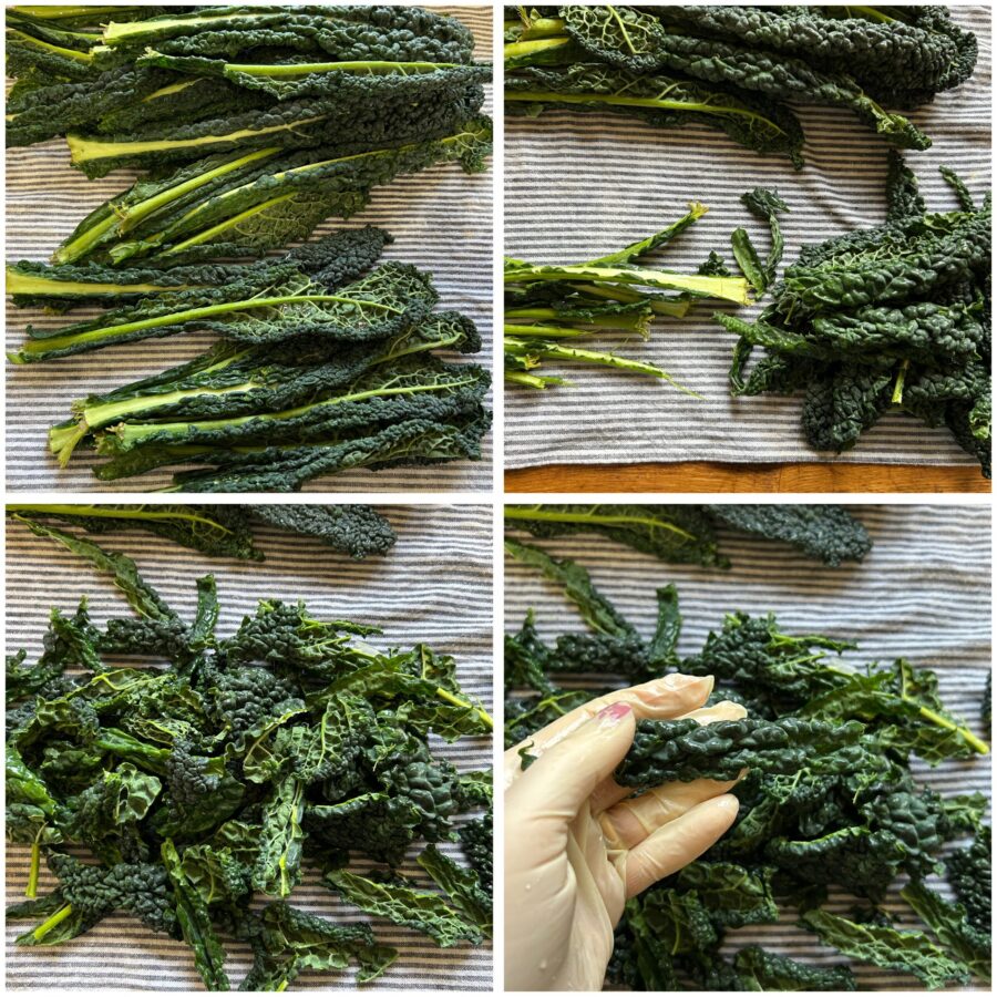 Para obtener chips de col rizada perfectas es importante secar muy bien las hojas después del lavado. Incluso una pequeña cantidad de agua residual podría comprometer la textura crujiente durante la cocción.