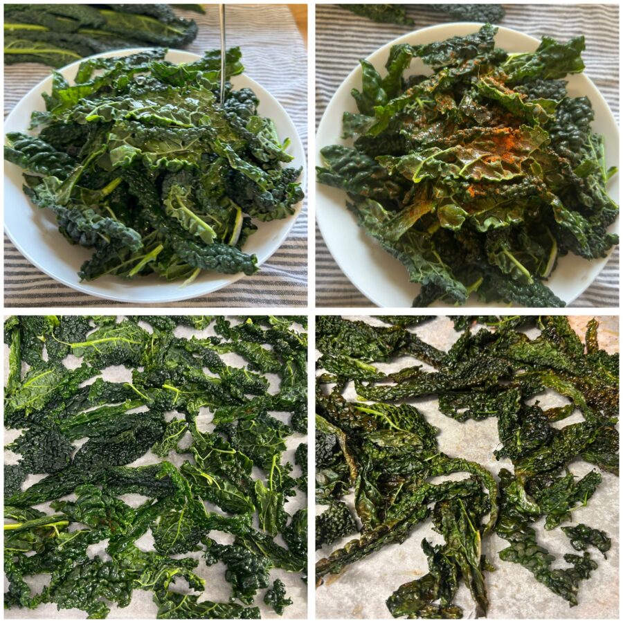 Pasos para hacer las chips de col rizada al horno
